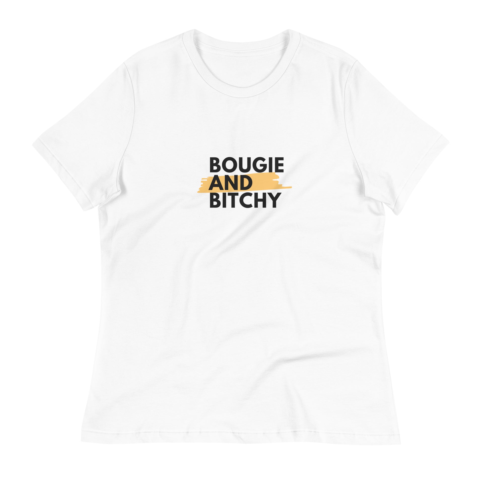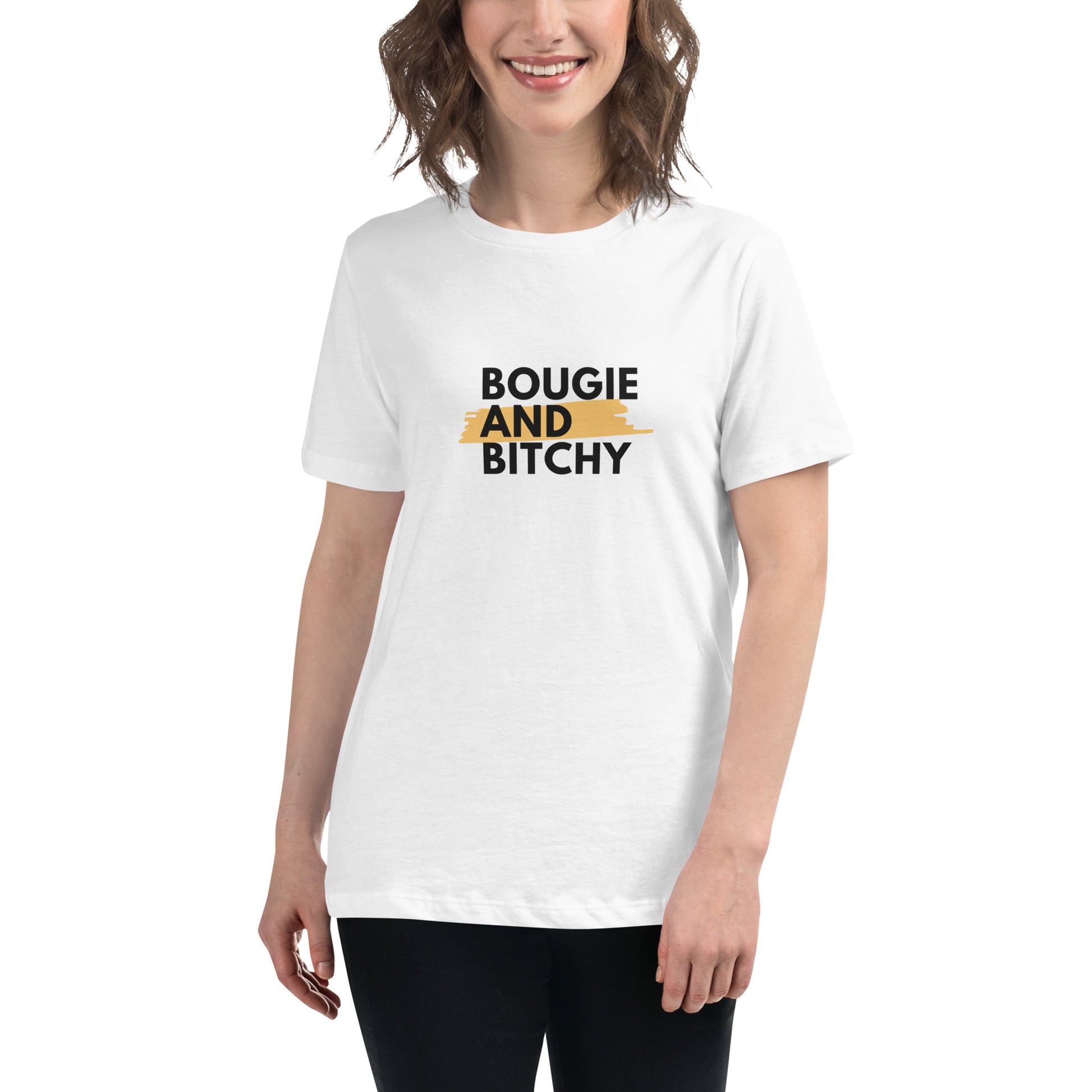 Bougie or bitchy. I think it’s ok to be both. This just might be the softest and most comfortable women's t-shirt you'll ever own. Combine the relaxed fit and smooth fabric of this tee with jeans to create an effortless every-day outfit, or dress it up with a jacket and dress pants for a business casual look.